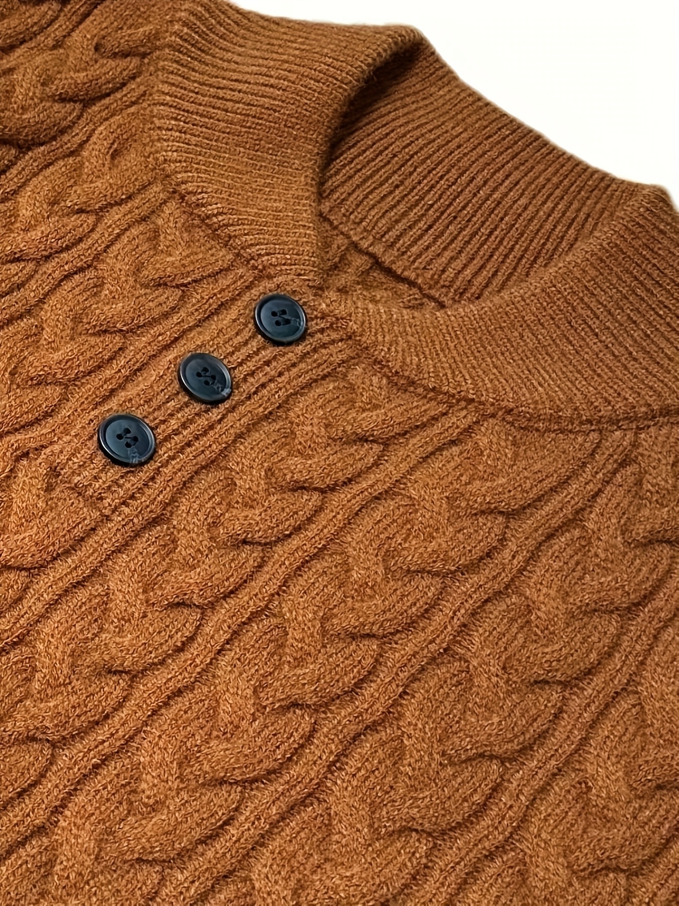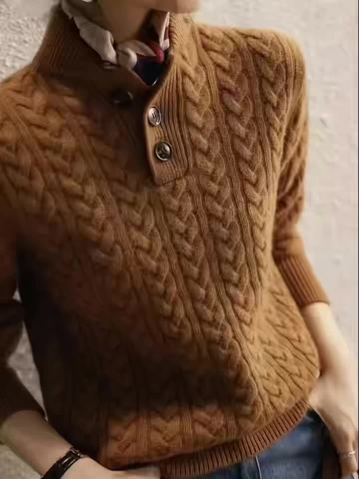 Women's Elegant Cable Sweater - Long Sleeve Pullover Sweater with Stand-Up Collar & Front Button Closure, Chic Fall Winter Sweater for Office, Party, Everyday Outfits - Women's Sweater Clothing, Office Wear, Classic Knitwear, Cozy Fabric, Working Professionals
