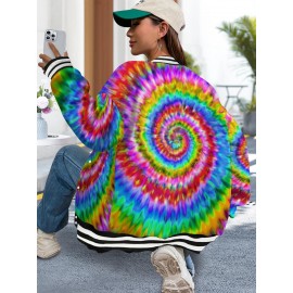 Plus Size Men's & Women's 60s/70s Retro Bohemian Rainbow Tie-Dye Jacket - Multicolor Swirl Print (Green/Blue/Pink//) Long Sleeve Hooded Coat for Festivals, Raves, Casual Wear - Unisex Vintage Outerwear