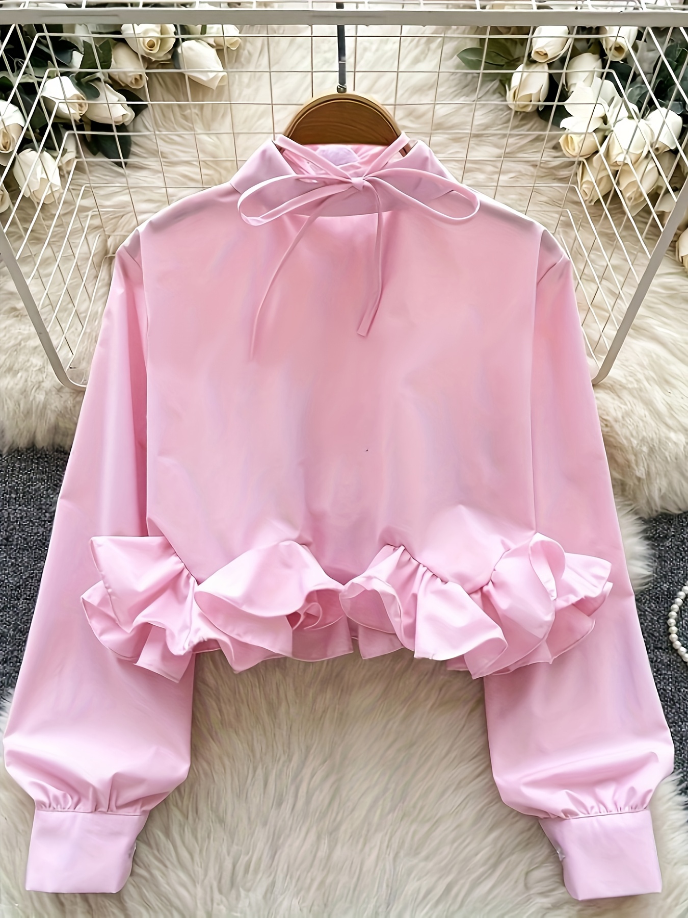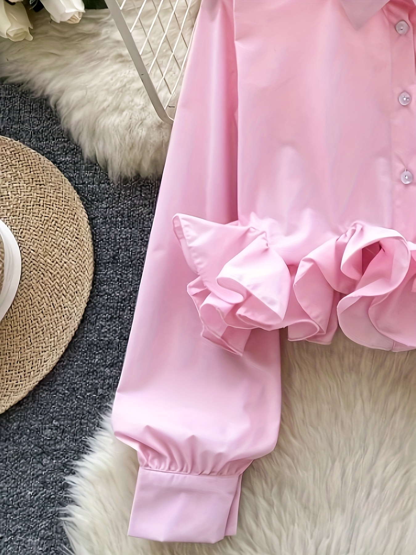 Women's Elegant Short-Sleeve-like Long Sleeve Blouse - Pink Ruffled Collar & Cuff Trim, -Line Shirt, Solid Color -Season Top for Weddings, Parties & Office - Machine Washable (Non-Stretch) Pink Blouse, Blouses For Women, Blouses For Women Elegant Classy, White Blouse, Womens Tops And Blouses, White Blouse For Women, Tops For Women, White Blouses For Women, Tops For Women Elegant Classy, Ladies Tops And Blouses, Plus Size Women Blouses, Long Sleeve Tops For Women, White