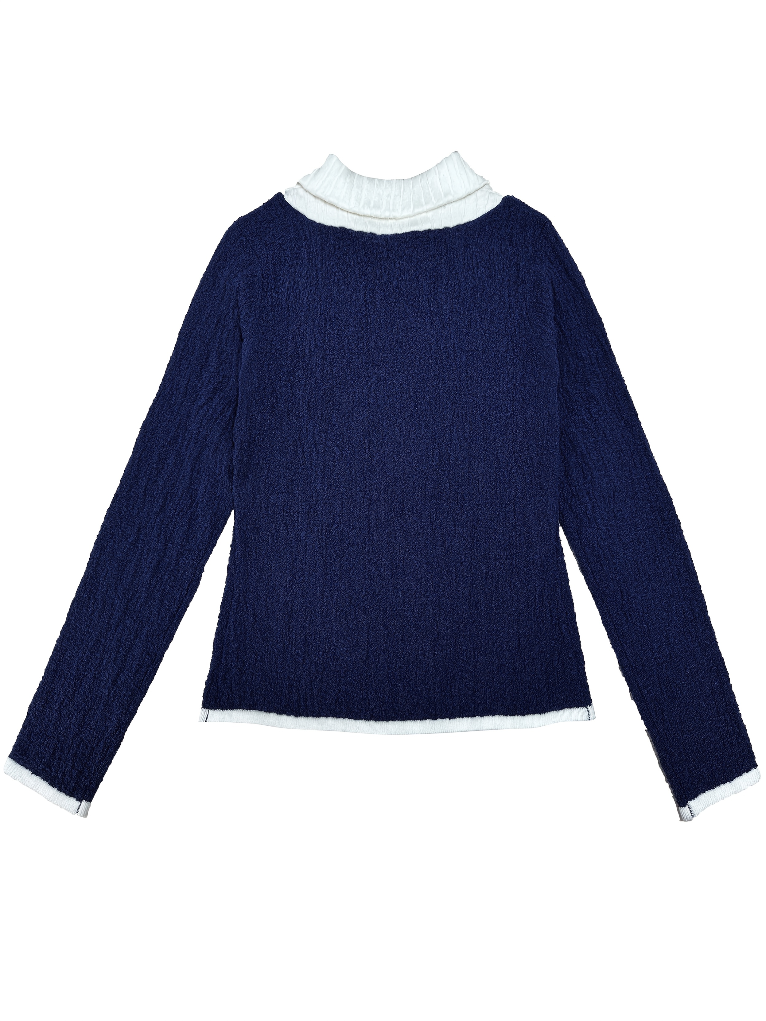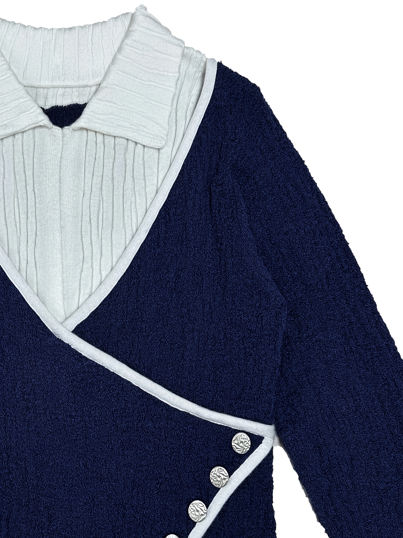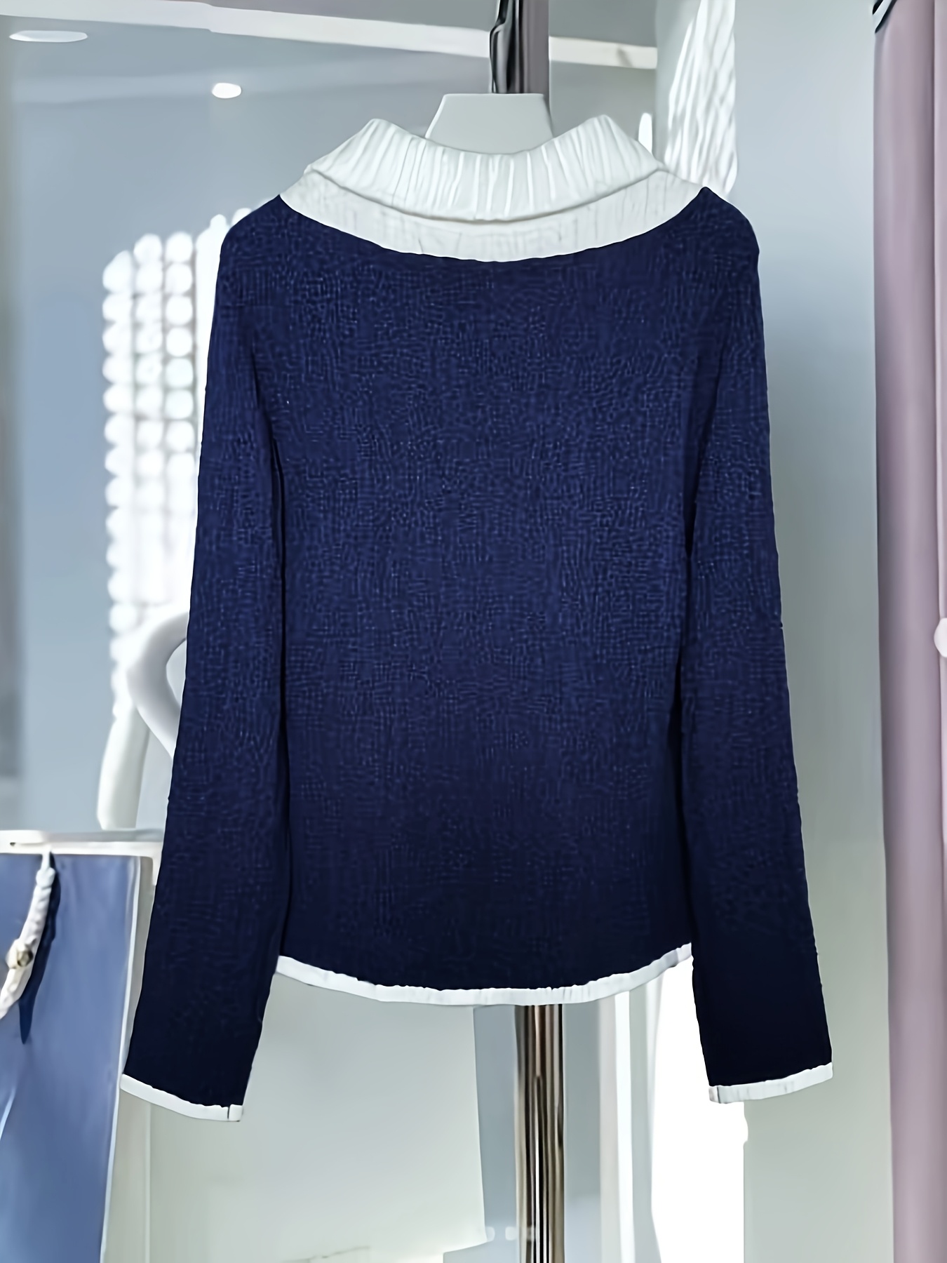 [Women's Navy Blue Sweater] Elegant Fake Two-Piece Sweater for Women | Navy Blue, Waist Accent, Soft Chic, Office & Party Outfits, Machine Washable, Winter, Seasonal Wardrobe Staple, Asymmetrical Detailing, Comfortable Fit, Fashionforward Top, Trendy