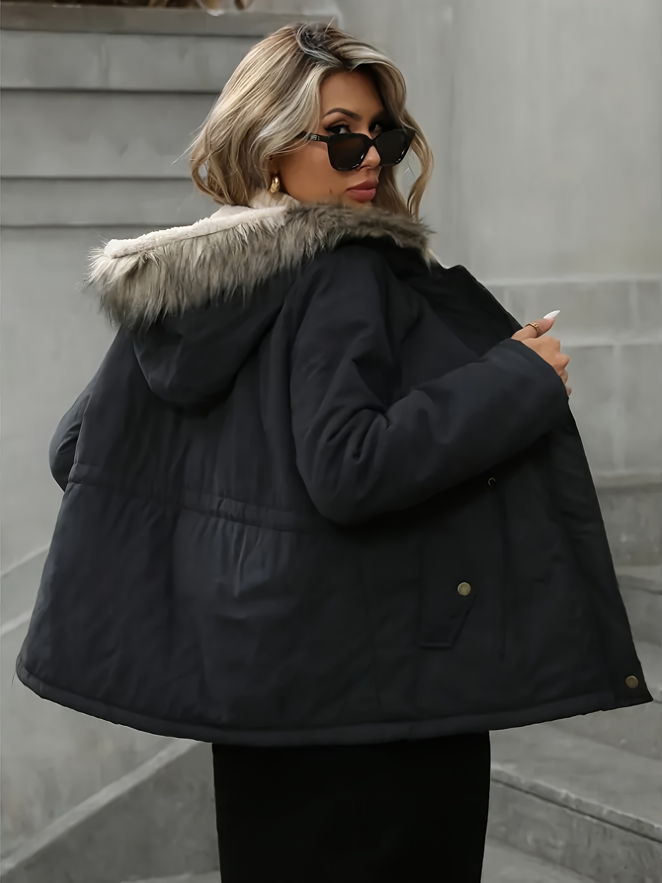 Women's Plus Size Oversized Hooded Jacket with Pockets - Warm Winter Coat, Machine Washable Casual Sports Outerwear, Solid Color Long Sleeve Zip-Free Design for Fall & Winter, Versatile for Everyday & Special Occasions